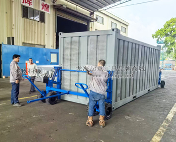 輪式集裝箱搬運(yùn)車產(chǎn)品介紹: 輪式集裝箱搬運(yùn)車是一款集裝箱提升和運(yùn)輸于一體的常用工具,只需兩個人即可輕松提升或降低集裝箱。 將搬運(yùn)車的輪子連接到集裝箱角件,選擇合適的車輛,在平坦地面安全行駛,即可以每小時7.5英里的速度推動或拖拽重物; 20英尺集裝箱的轉(zhuǎn)彎半徑約為10米,要想減少轉(zhuǎn)彎半徑,您可以解鎖后輪并用手輕輕轉(zhuǎn)向,用手操縱后角單元需要光滑的表面(混凝土、瀝青)等。 采用耐磨的大輪子設(shè)計,因此,輪式集裝箱搬運(yùn)車可用于粗糙路面。 可廣泛用于海內(nèi)外集裝箱堆場的集裝箱地面搬運(yùn),儲能柜、集裝箱方艙的搬運(yùn)及定位、以及各種需要搬運(yùn)集裝箱的室外場景。 輪式集裝箱搬運(yùn)車使用示意圖: