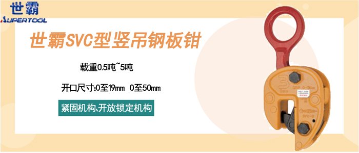 世霸SVC型豎吊鋼板鉗介紹: 【產(chǎn)品名稱(chēng)】世霸SVC型豎吊鋼板鉗 【產(chǎn)品品牌】日本·世霸(SUPER TOOL) 【產(chǎn)品保質(zhì)】12個(gè)月 【產(chǎn)品型號(hào)】SVC 【產(chǎn)品材質(zhì)】特殊合金鋼 【產(chǎn)品分類(lèi)】豎吊鋼板鉗 【典型應(yīng)用】常用于平板的縱向懸掛工作,可以用于提升和翻轉(zhuǎn)。型鋼、管道吊裝。