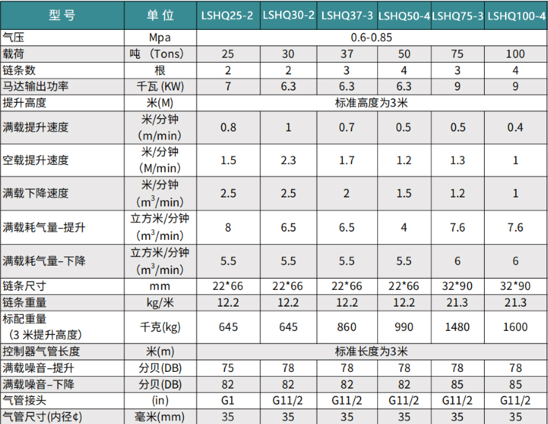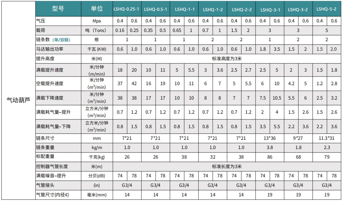 LSHQ型氣動葫蘆介紹: 【產(chǎn)品名稱】LSHQ型氣動葫蘆 【產(chǎn)品品牌】龍升品牌 【產(chǎn)品規(guī)格】0.25-100T 【產(chǎn)品保質(zhì)】保質(zhì)2年 【產(chǎn)品來源】氣動葫蘆 【產(chǎn)品定制】鏈條可定制鍍鋅材質(zhì)可定制100級 、鏈條長度可加長、可定制銅質(zhì)上下吊鉤 【典型應(yīng)用】適用于船廠,化工廠,高溫粉塵環(huán)境,紡織廠提升和運(yùn)輸產(chǎn)品,噴漆車間、油罐儲運(yùn)等場合。